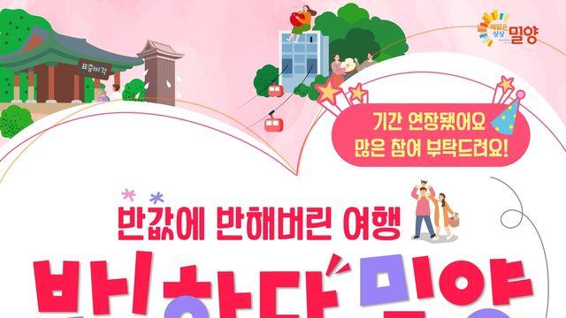 (밀양=연합뉴스) 김동민 기자 = 경남 밀양시는 체류형 관광 활성화를 위한 ‘반하다 밀양 반값 여행 페이백(환급)’ 사업 기간을 오는 31일까지 연장한다고 15일 밝혔다.