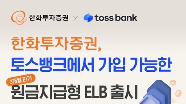 한화투자증권은 토스뱅크에서 가입할 수 있는 주가연계파생결합사채(ELB)를 출시했다고 15일 밝혔다.