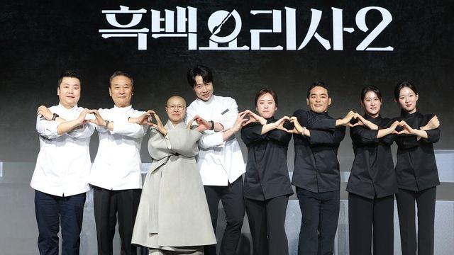 17일 오전 서울시 종로구 JW 메리어트 동대문 LL층 그랜드볼룸에서는 넷플릭스 예능 ‘흑백요리사: 요리 계급 전쟁2’(이하 ‘흑백요리사2’) 제작발표회가 개최됐다. 이날 제작발표회에는 김학민, 김은지 PD, 백수저 셰프 4인(선재스님, 정호영, 손종원, 후덕죽), 흑수저 셰프 4인(아기 맹수, 중식 마녀, 프렌치 파파, 술 빚는 윤주모)이 참석했다.