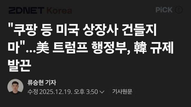미국, “쿠팡 적당히 건드려라” NEWSPIC 2025년 12월 19일 Leave a Comment on 미국, “쿠팡 적당히 건드려라” Posted in BBC News 내용: ㅋㅋㅋㅋㅋ – Author: NEWSPIC