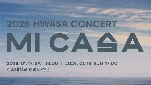 소속사 피네이션은 화사가 내년 1월 17일과 18일, 이틀간 서울 동대문구 경희대학교 평화의전당에서 ‘2026 HWASA CONCERT <MI CASA>(2026 화사 콘서트 <미 카사>)’를 개최한다고 밝혔다.