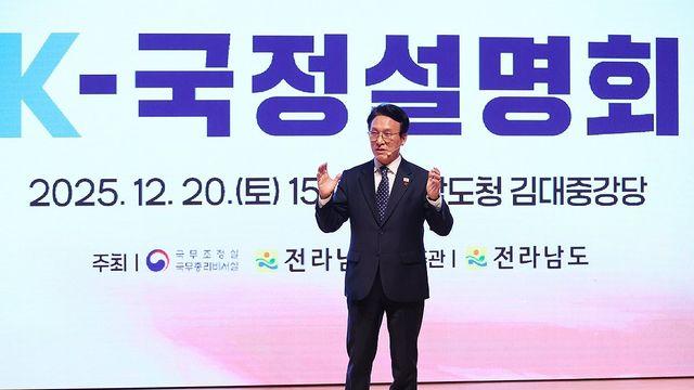 (무안=연합뉴스) 이정훈 기자 = 김민석 국무총리가 20일 전남 무안군 전남도청에서 열린 K-국정설명회에서 발언하고 있다. 2025.12.20 uwg806@yna.co.kr