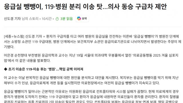 “구급차에 의사 동승하게 하자” 이동진료형 구급차 제안 NEWSPIC 2025년 12월 21일 Leave a Comment on “구급차에 의사 동승하게 하자” 이동진료형 구급차 제안 Posted in BBC News 내용: 그러니까 결국 소방 공공의대 만들어서 의사 구급대원 공무원 뽑으면 될 것 아니오 교수양반 Author: NEWSPIC